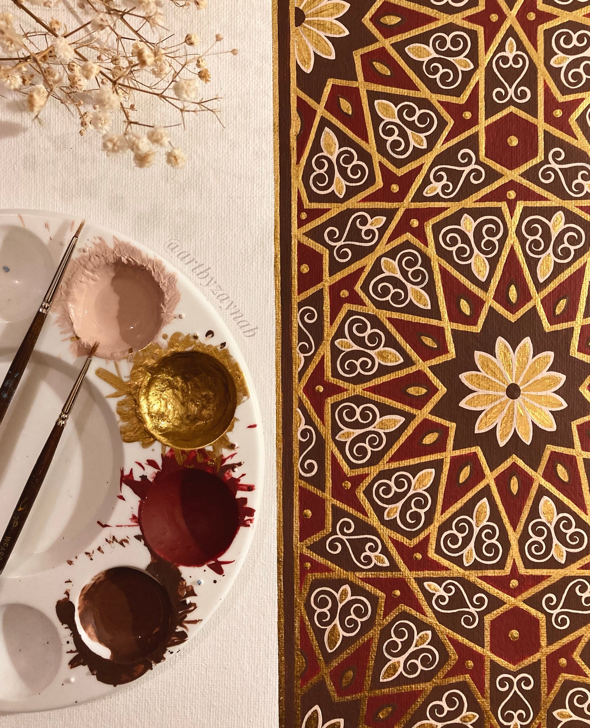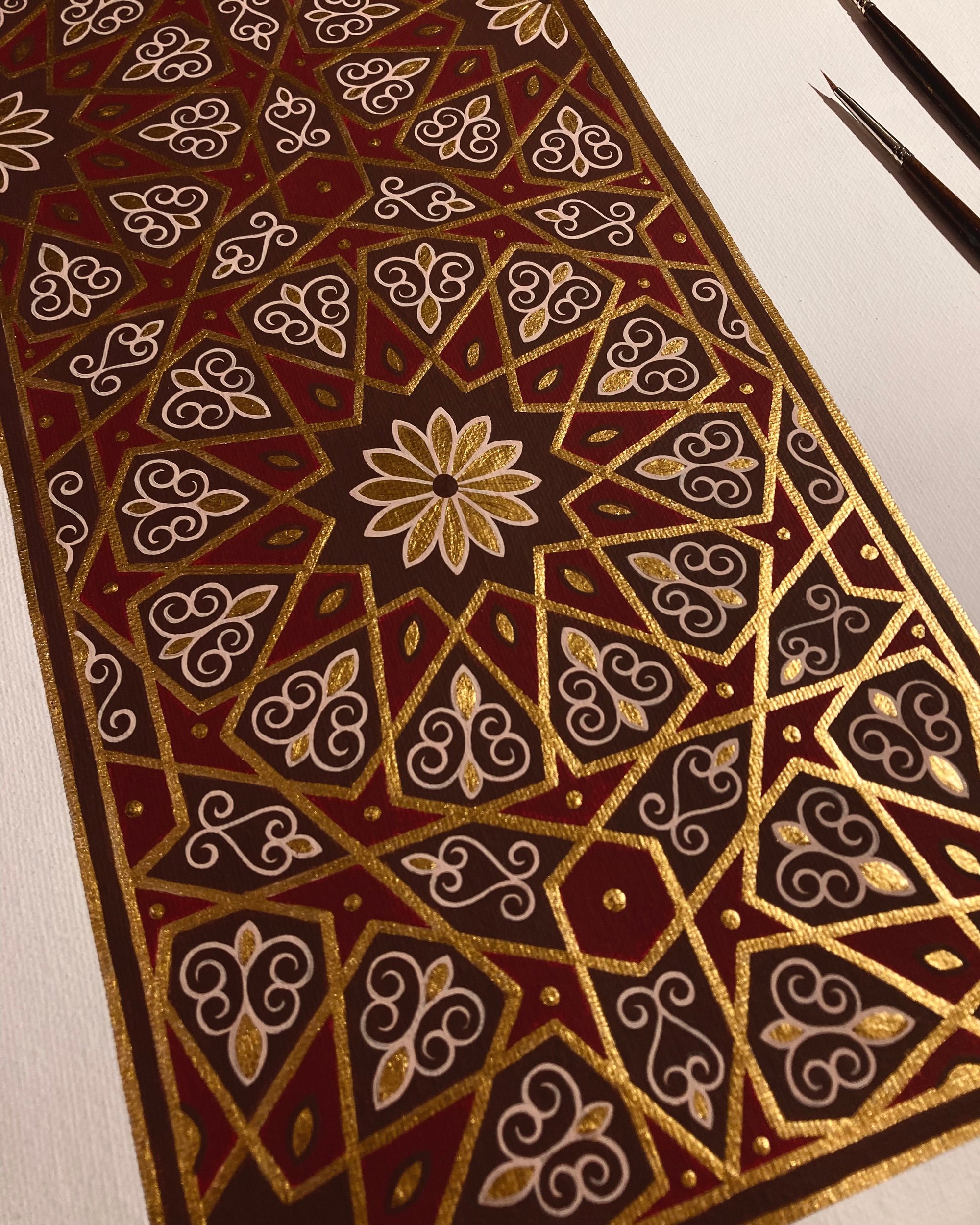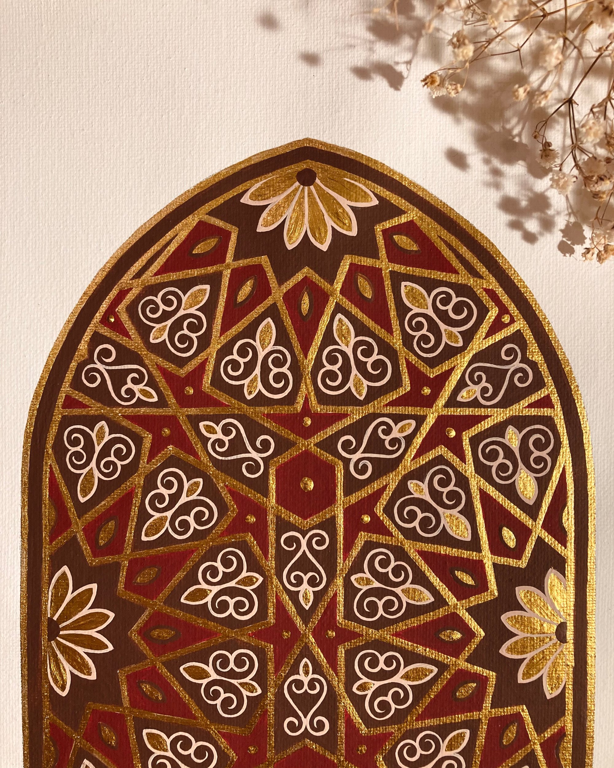 Medium: acrylic and liquid gold leaf on cotton canvas sheet.