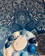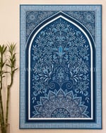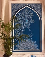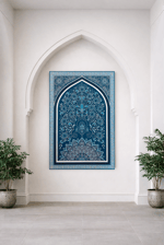 A Persian-inspired arch and floral motifs in shades of blue that inspire stillness, depth and growth.